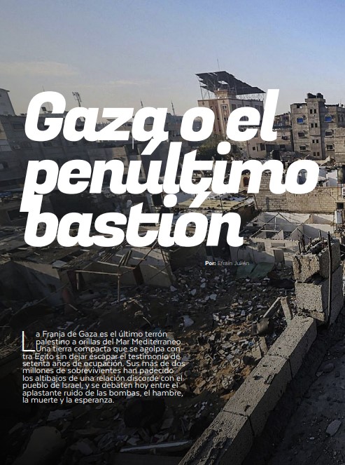 La Franja de Gaza es el último terrón palestino a orillas del Mar Mediterraneo. Una tierra compacta que se agolpa contra Egito sin dejar escapar el testimonio de setenta años de ocupación. Sus más de dos millones de sobrevivientes han padecido los altibajos de una relación discorde con el pueblo de Israel, y se debaten hoy entre el aplastante ruido de las bombas, el hambre, la muerte y la esperanza.