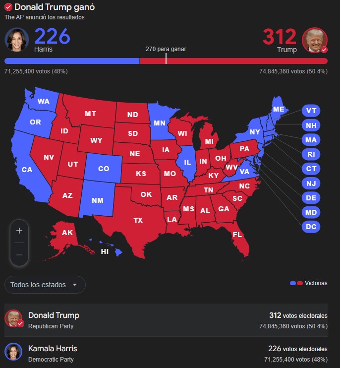 Donald Trump ha logrado una contundente victoria en las elecciones presidenciales. Su regreso a la Casa Blanca tras una campaña intensa y polarizada está enmarcado en que ganó la mayoría de los votos en el Colegio Electoral. La contienda estuvo marcada por debates acalorados sobre temas como la economía, la inmigración, la seguridad nacional y la política exterior, frente a una Kamala que no tuvo el mismo tiempo de campaña y que además, según varios analistas. sufrió los intencionados tropiezos que Biden como presidente en ejercicio puso en su campaña. El más recordado fue cuando Joe llamó “basura” a los electores de Trump y ya vimos como resultó.